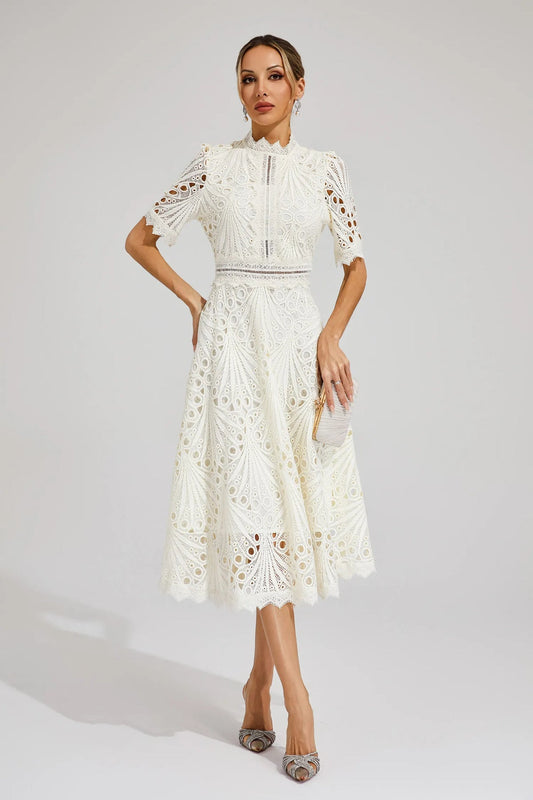 Vorelle Casual Flower Embroidery Short Sleeve Dress