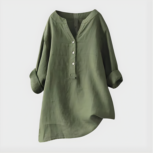 Veronique™ Elegant Cotton-Linen V-Neck Blouse