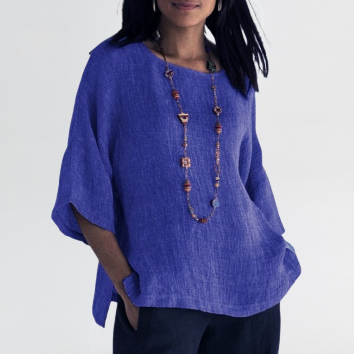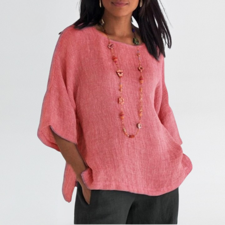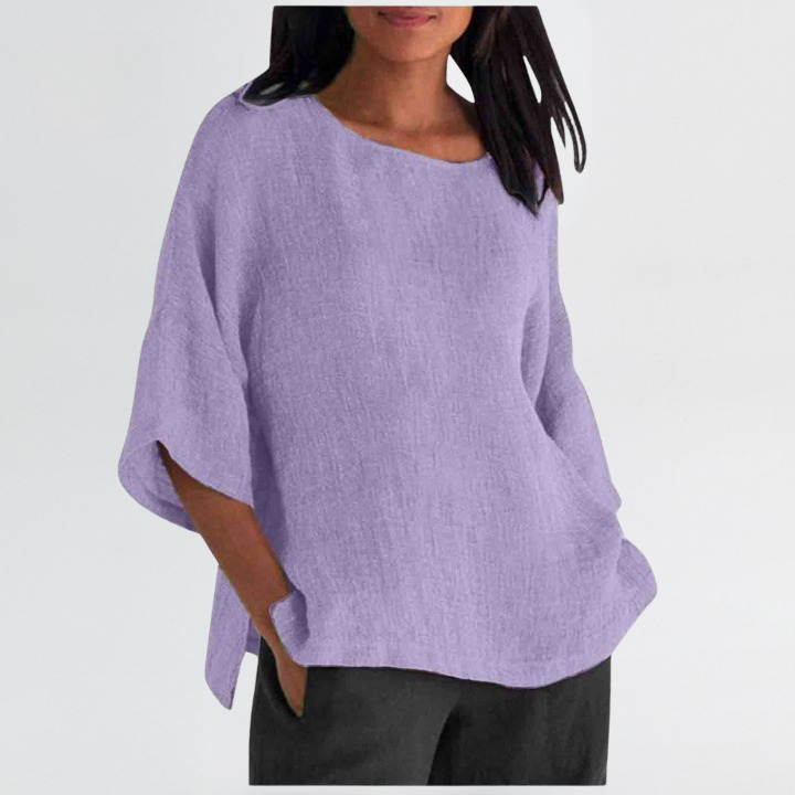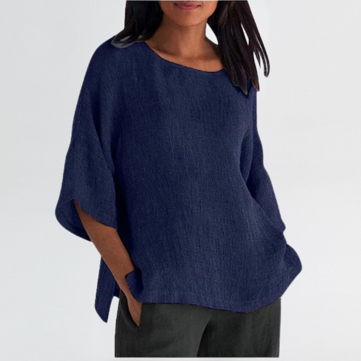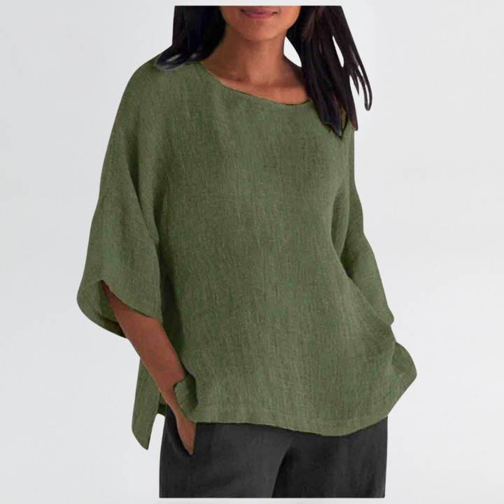The Isla Top is all about effortless comfort with a touch of timeless style. Its flowy batwing silhouette drapes gracefully over the midsection, giving you a tummy-friendly fit that feels relaxed yet chic. Made from a breathable cotton-linen blend, it keeps you cool and comfortable while adding a refined texture to your everyday wardrobe — perfect for coffee dates, errands, or casual outings.